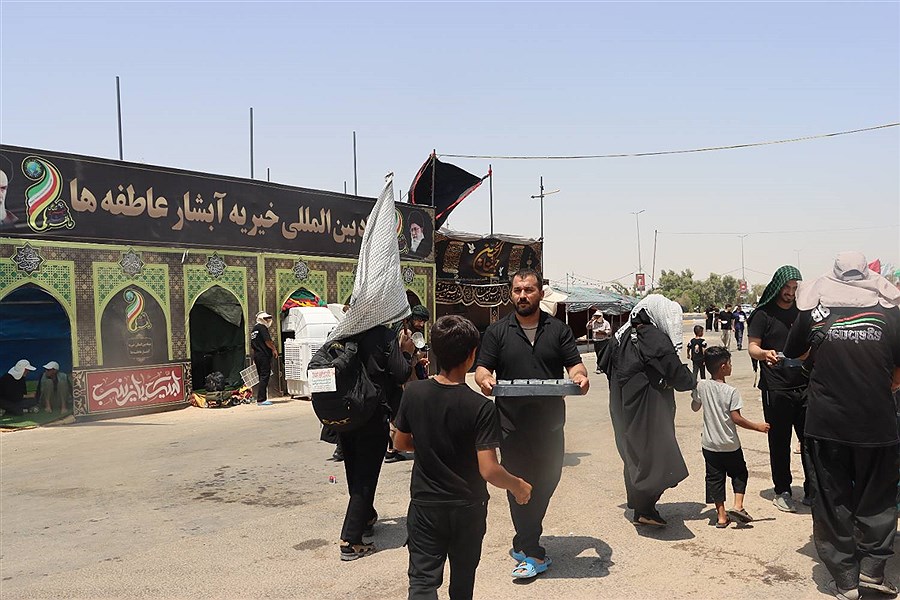 خدمت رسان موکب آبشار عاطفهها در مسیر اربعین 1404 از پنجره دوربین (15 مردادماه)